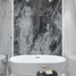 В новом проекте в Москве (ул. 1905 года) мы сделали ставку на тактильность и благородство камня