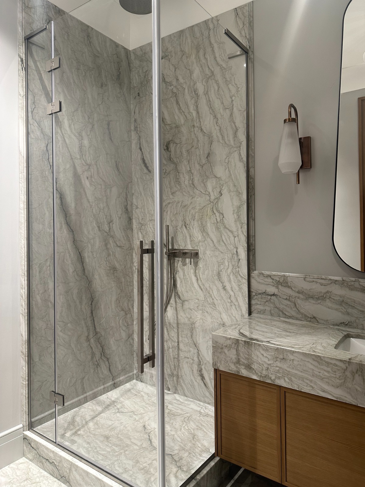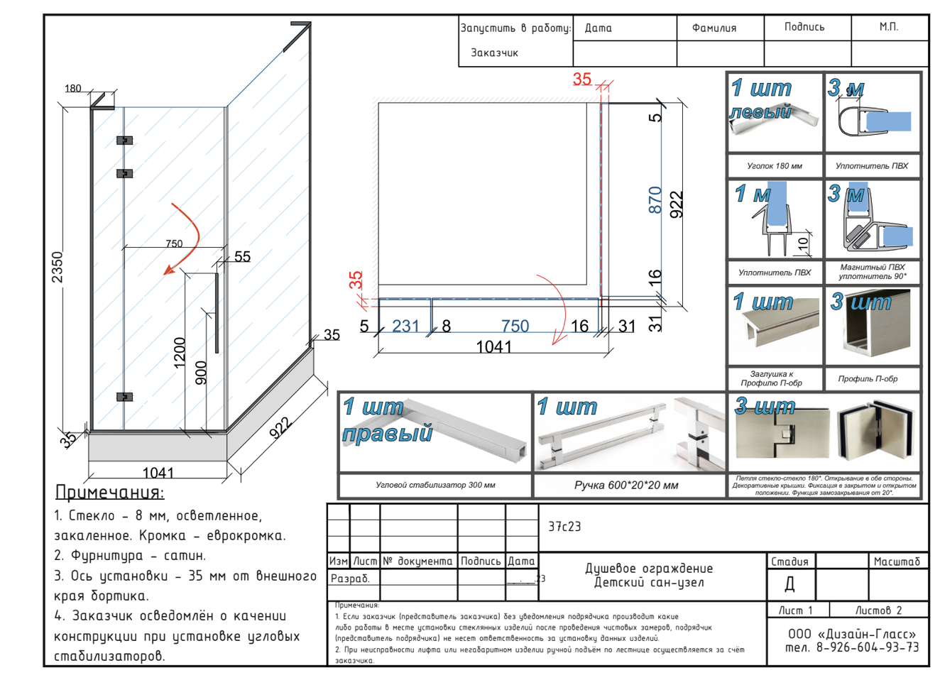 В проекте использовано безопасное закалённое стекло толщиной 8мм, прозрачное, легко очищается.