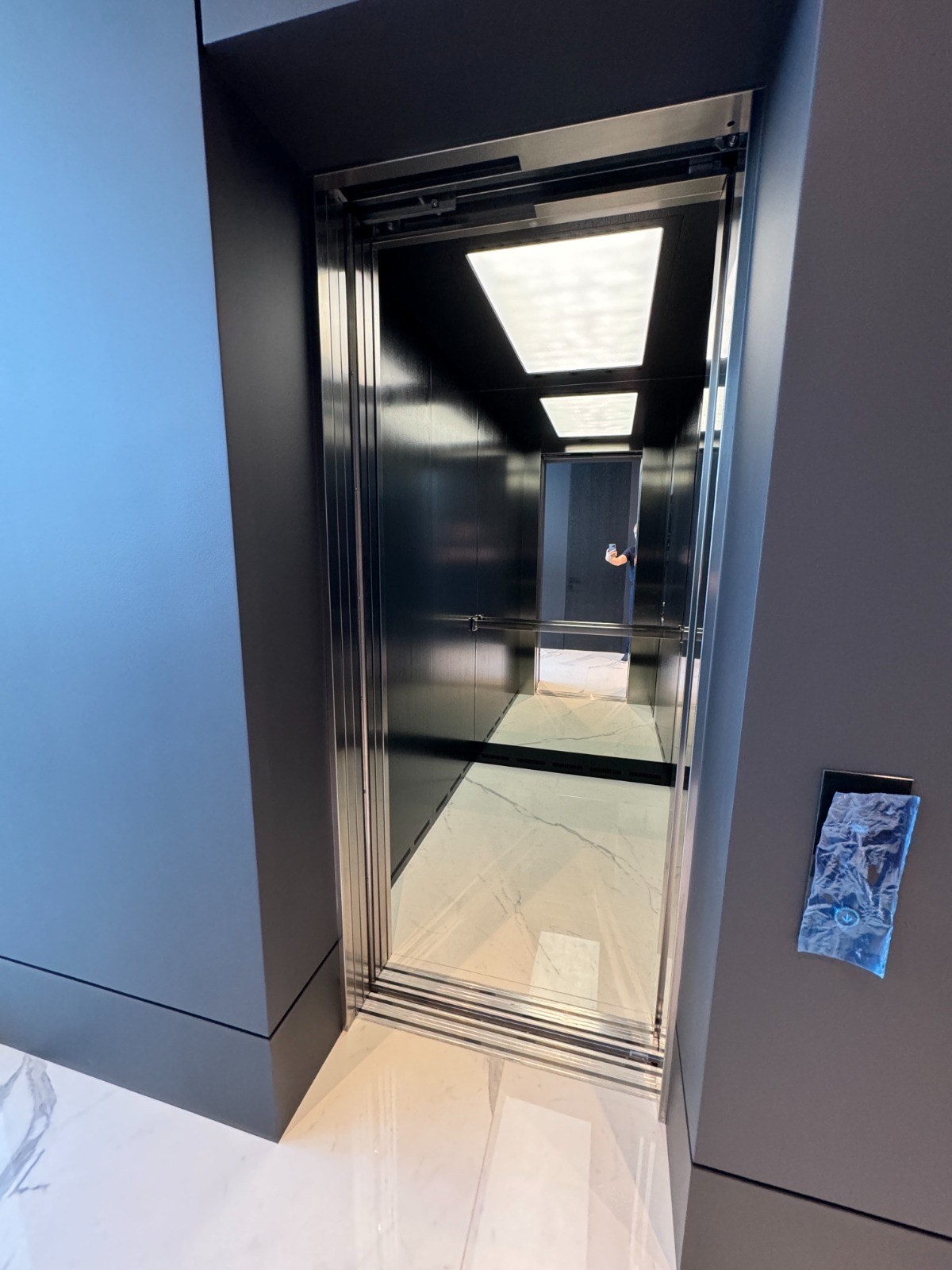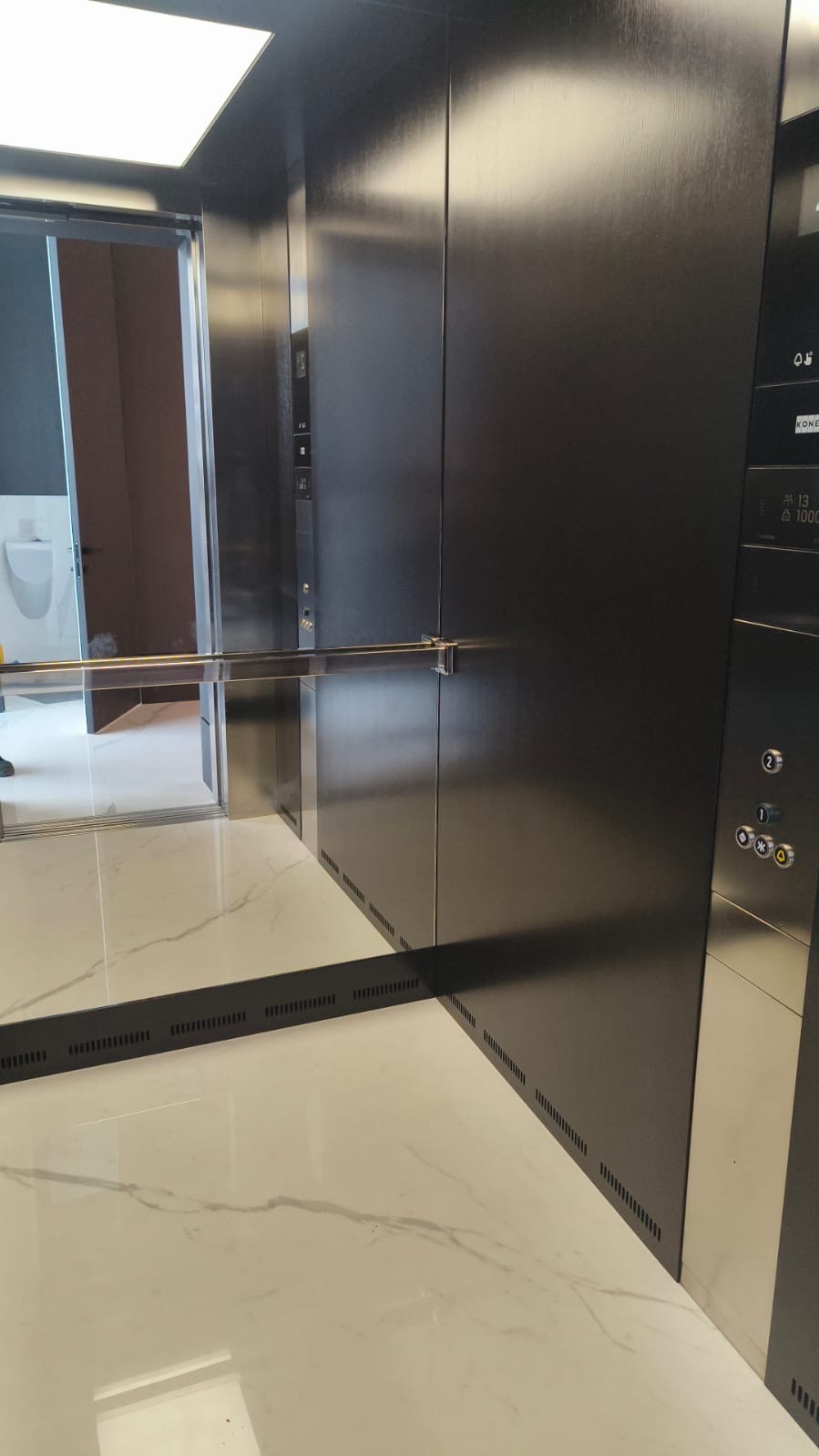 Стильная и износостойкая отделка лифтовой кабины, созданная для интенсивной эксплуатации и высокой презентабельности объекта. Материалы подобраны с акцентом на долговечность, простоту ухода и безопасносность.