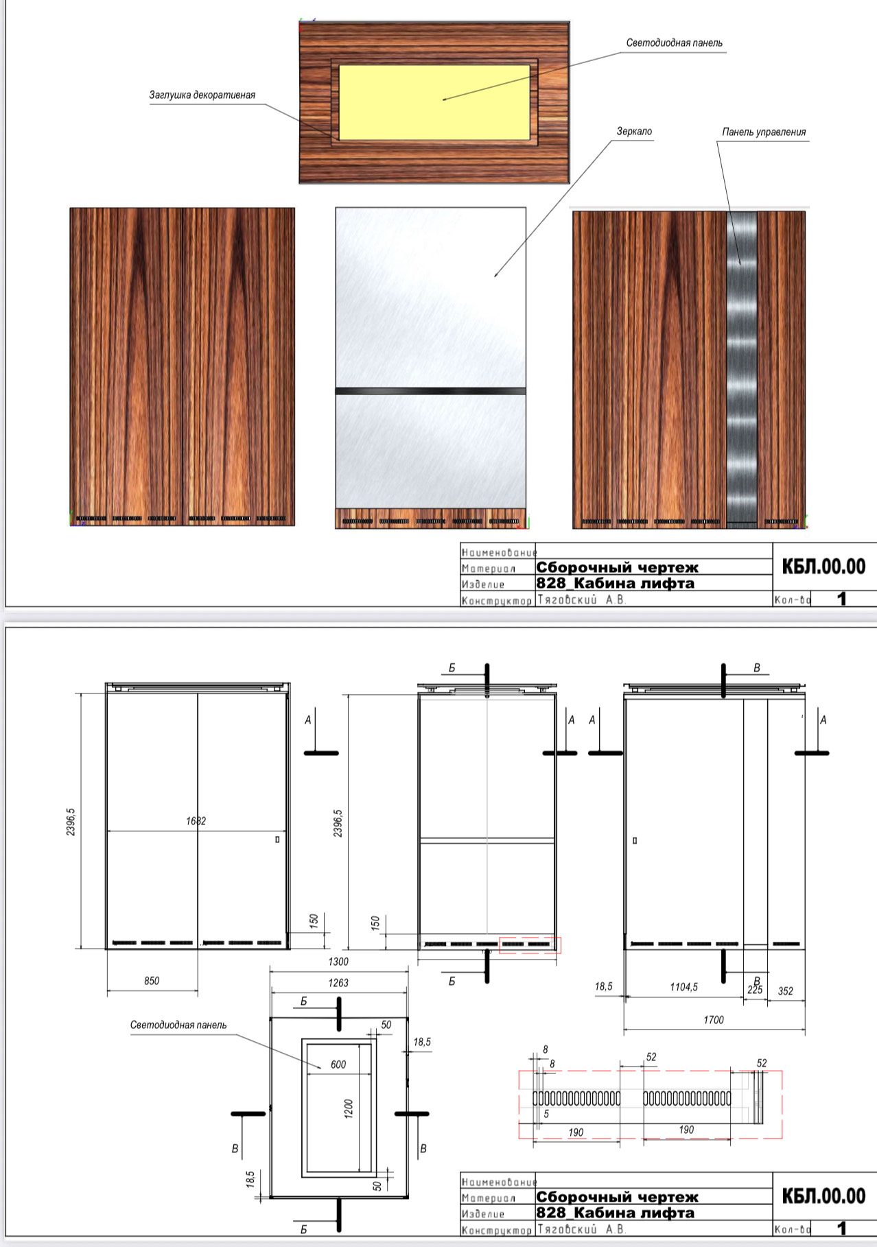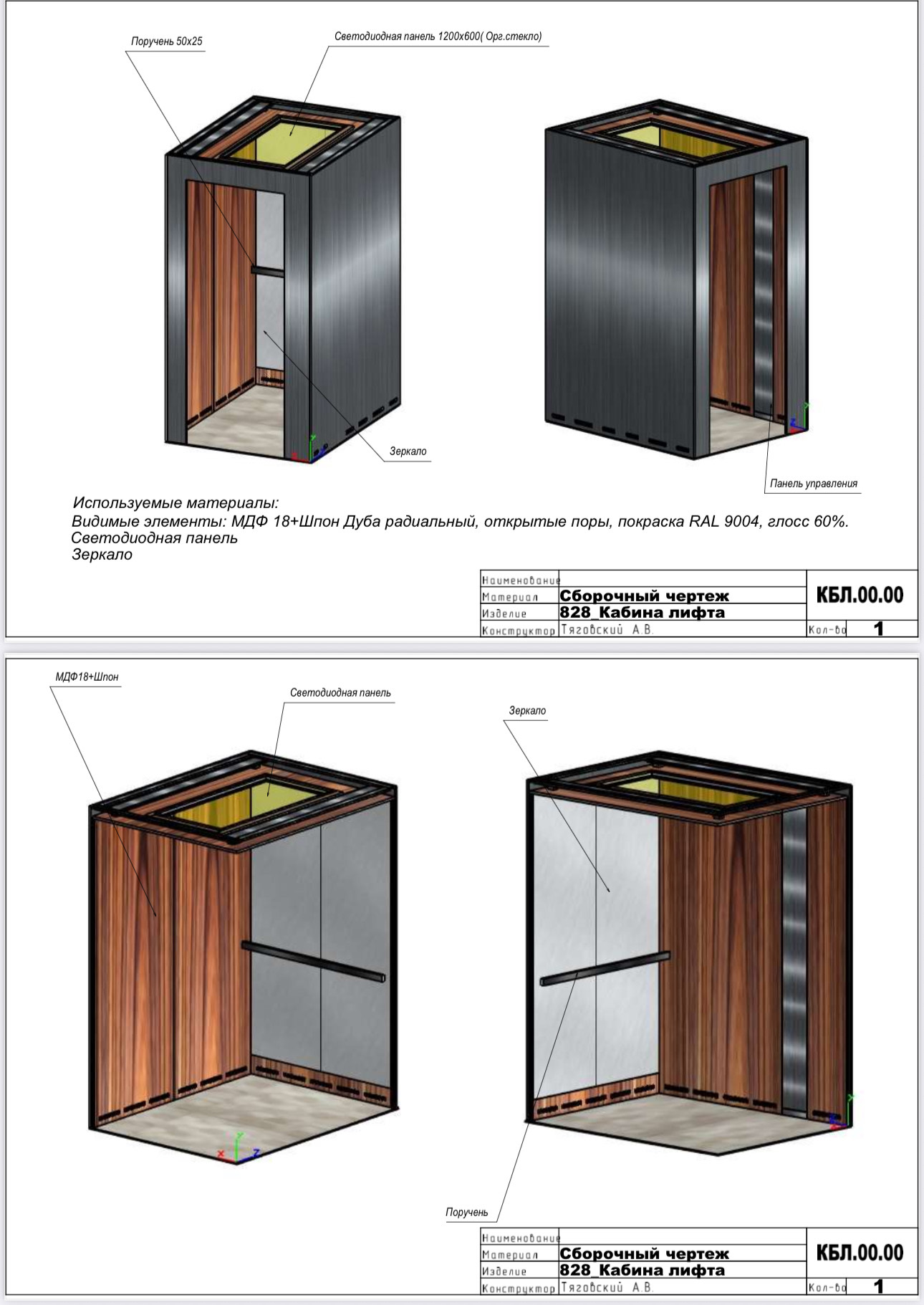Облицовка кабины и внешний стороны – шпон дуба, окрашенный.