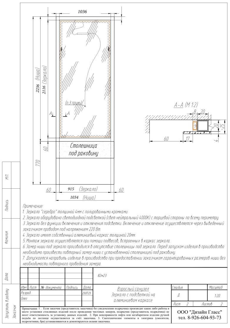 Стекло для перегородки и полок использовано Cristal Vision, 8мм. Для зеркала использовано полотно 4мм.