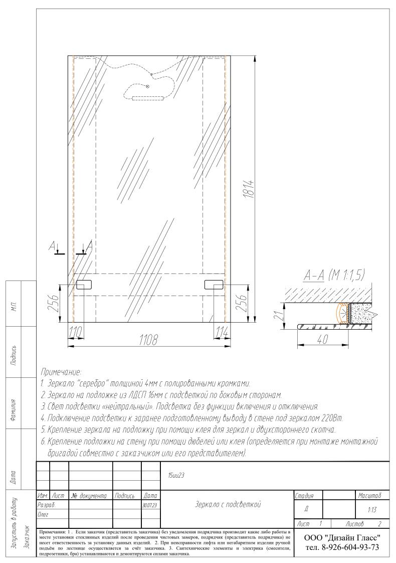 В данном проекте использовано зеркало 4мм, цвет подсветки нейтральный.
