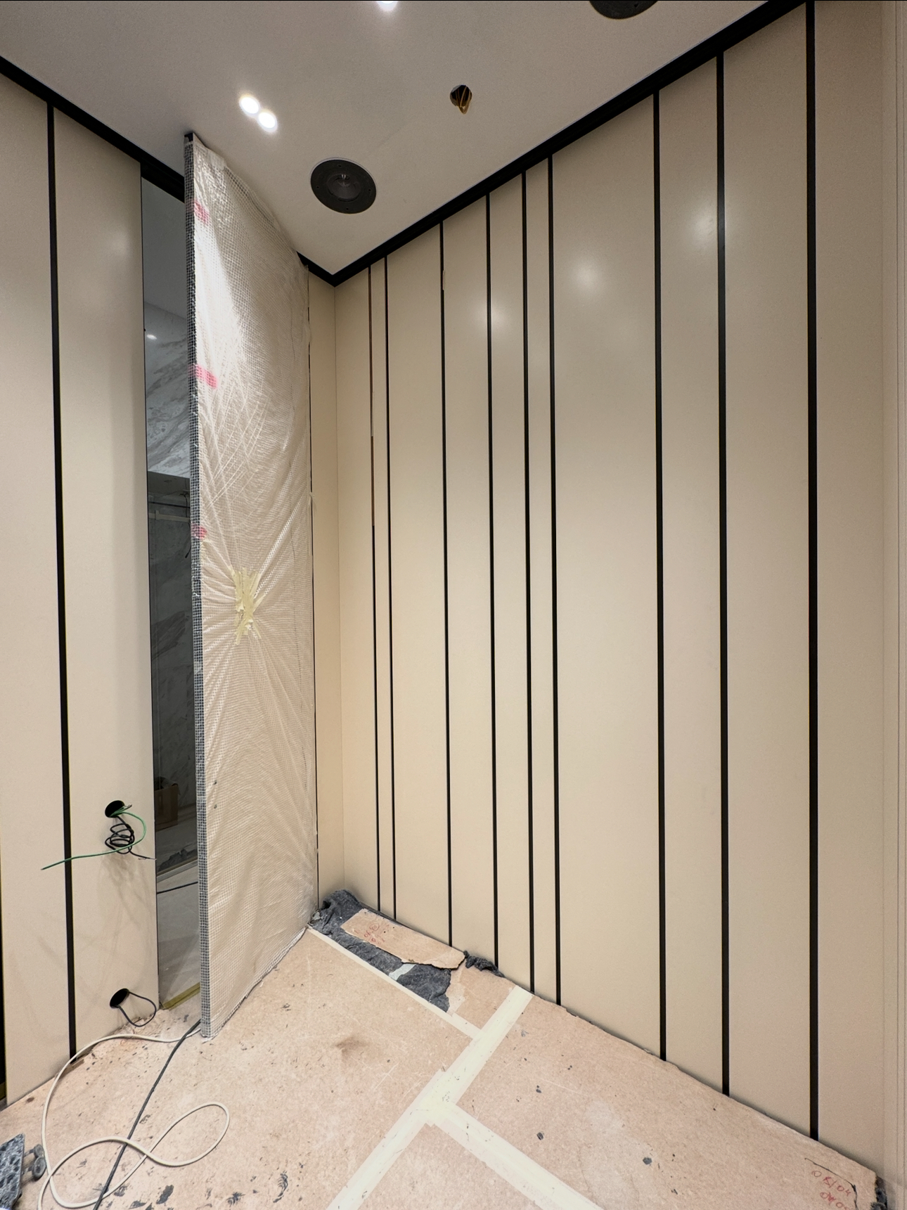 Дверь скрытого монтажа. Коробка инвизибл. Цвет двери и панели подготовлены в одной цветовой гамме.